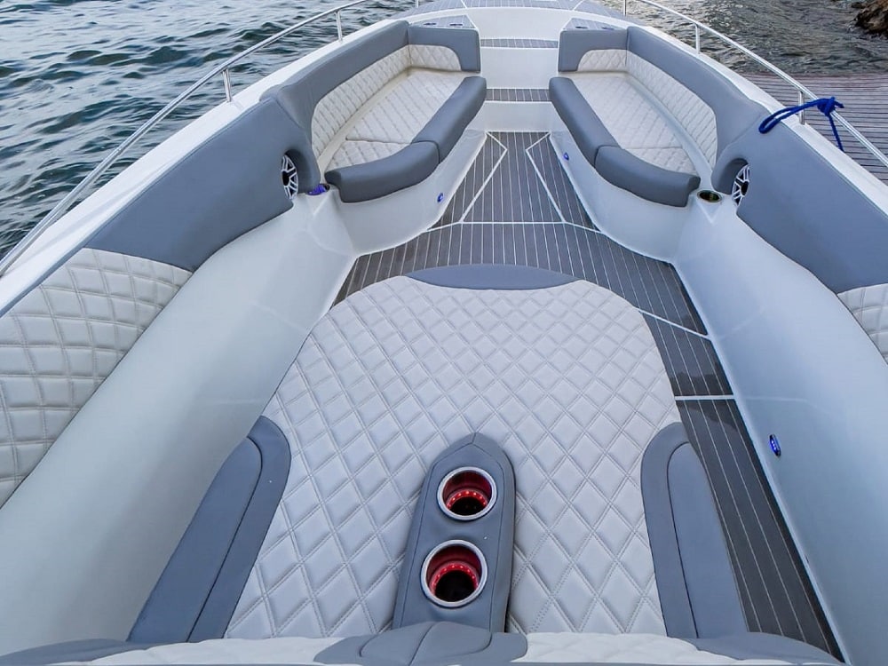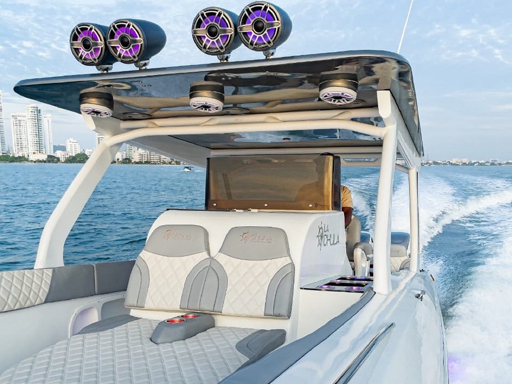 Esta embarcación es ideal para grupos medianos que buscan espacio, potencia y elegancia en una sola lancha.