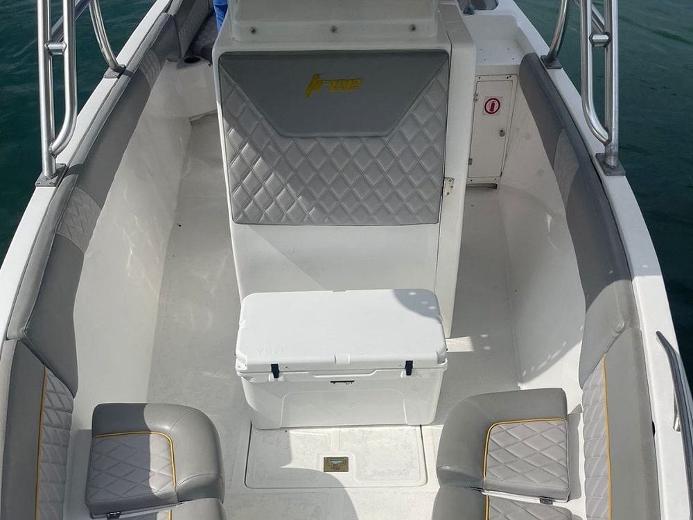 Esta lancha está diseñada para ofrecer una experiencia equilibrada entre confort, potencia y funcionalidad, convirtiéndose en la opción perfecta para explorar las Islas del Rosario sin preocupaciones.